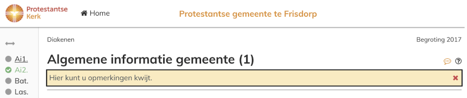 Klik op ziet u rechts boven in het scherm om een opmerking in te voeren (zie het voorbeeld hieronder). Verwijder een opmerking door op het rode kruisje te klikken.