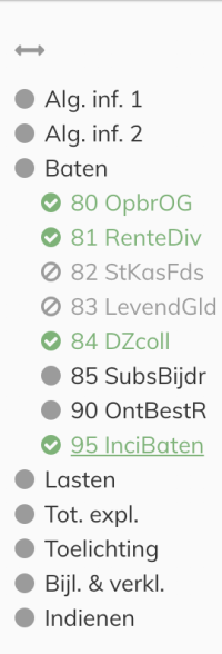 Indien u abusievelijk een rubriek hebt gesloten door het aanklikken van n.v.t. en u moet toch in die rubriek cijfers invullen, dan is dit mogelijk. U klikt dan op het vinkje achter n.v.t. en het scherm wordt weer volledig uitgerold.